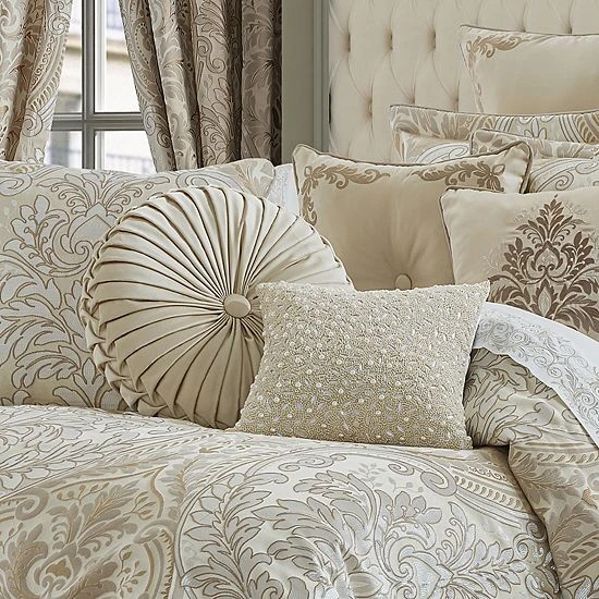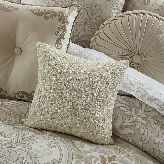 Elevate the look of any room with this Five Queens Court Beaded Decorative Throw Pillow.