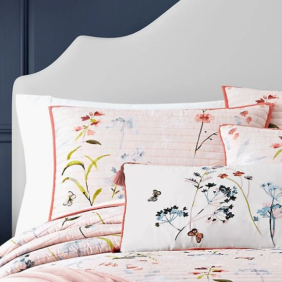 Completely covered in a beautiful floral print, the Blakely Coverlet from Five Queens Court breathes fresh life into your bedroom.