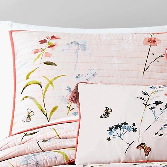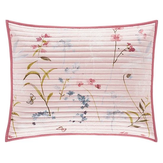 - A softly padded, perfectly matched, quilted pillow sham with the Blakely floral print, finished with coordinating piping