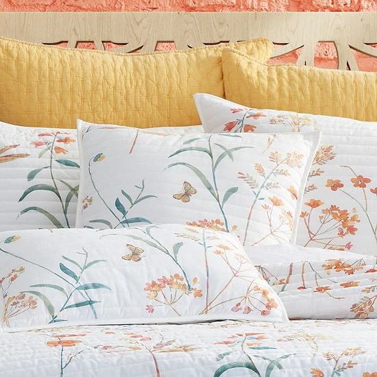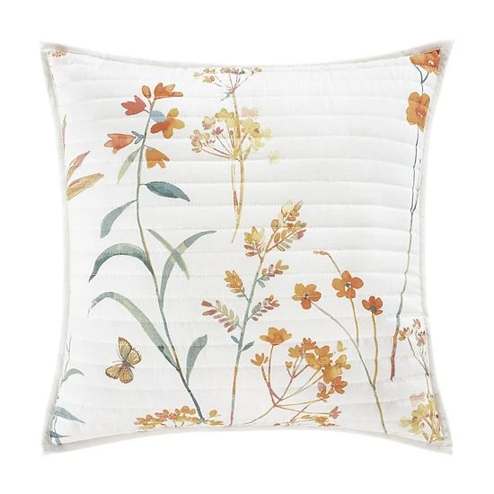 Add a trendy look to your bed with this Five Queens Court Bonnie Coral 18″ Square Quilted Decorative Throw Pillow.