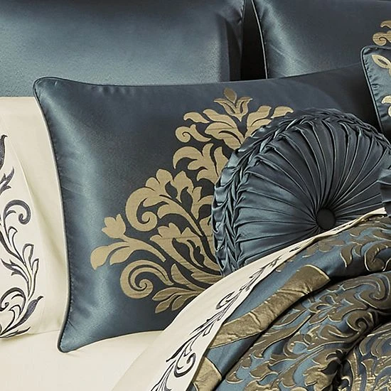 Redesign the look and feel of your bedroom with this stylish and cozy four-piece comforter set with shams from Five Queens Court.