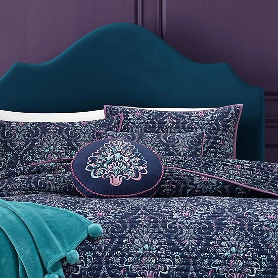 This quilted boudoir pillow from Five Queens Court uses beautiful top of bed print custom cut to highlight details.