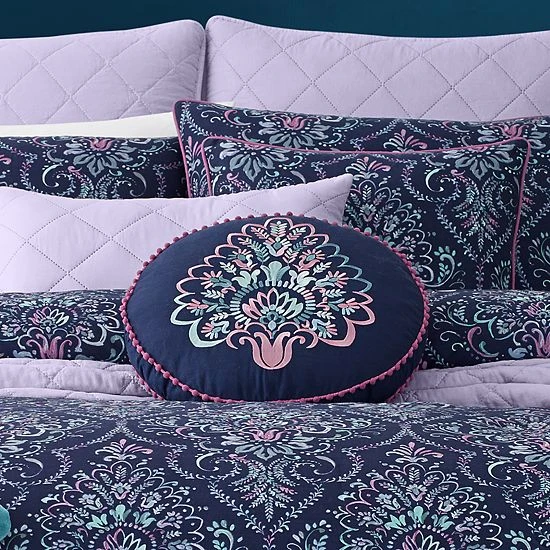 - Embroidered with beautiful top of bed medallion finished with fun pom-pom trimming