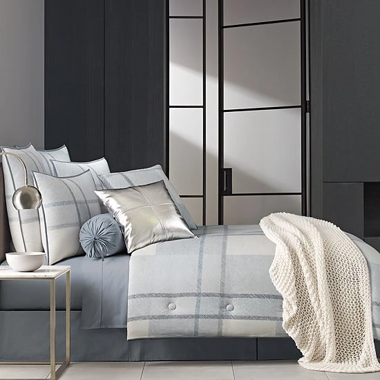 - Beautifully printed plaid design in textured shades of blue, which create a soft but striking contemporary look