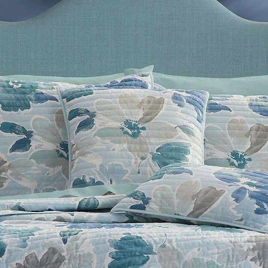 Add a trendy look to your bed with this Five Queens Court Michelle Blue 18″ Square Quilted Decorative Throw Pillow.