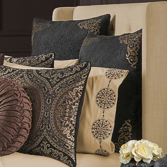 Showcase your inner designer by styling your bedroom with this trendy Five Queens Court Monaco Black Euro Sham.