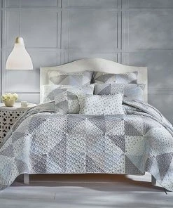 - The Phoebe quilt features an updated charming cottage patchwork design with small floral and geometric patterns in shades of blue, gray, taupe and white that transform this classic style into modern living.